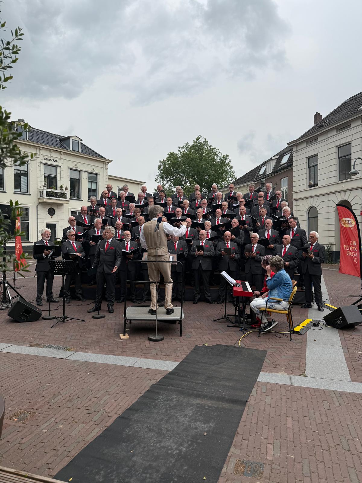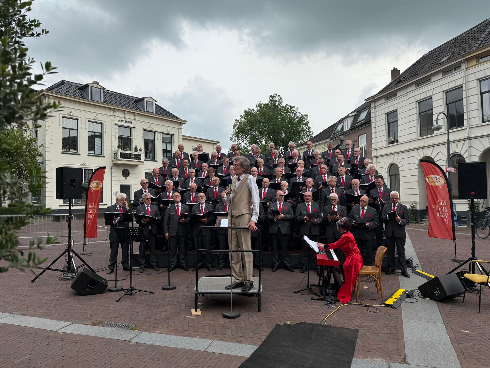 Vandaag beleefden we als Ettens Mannenkoor een optreden dat we niet snel zullen vergeten. We zongen op een van de meest indrukwekkende plekken van Nederland: het 5 Mei-plein in Wageningen, bij het historische Hotel de Wereld