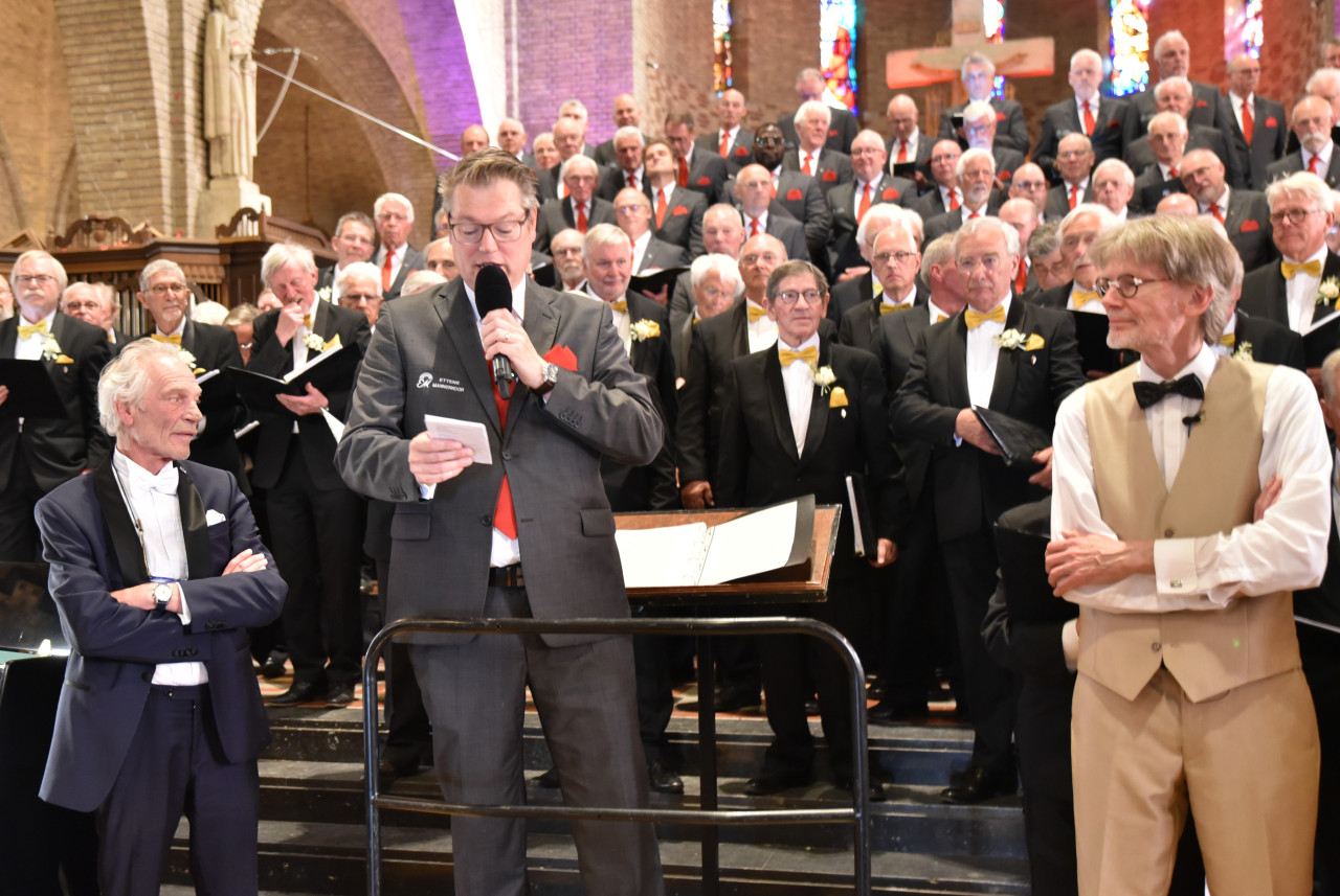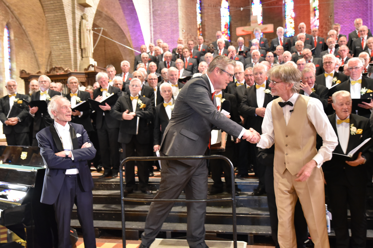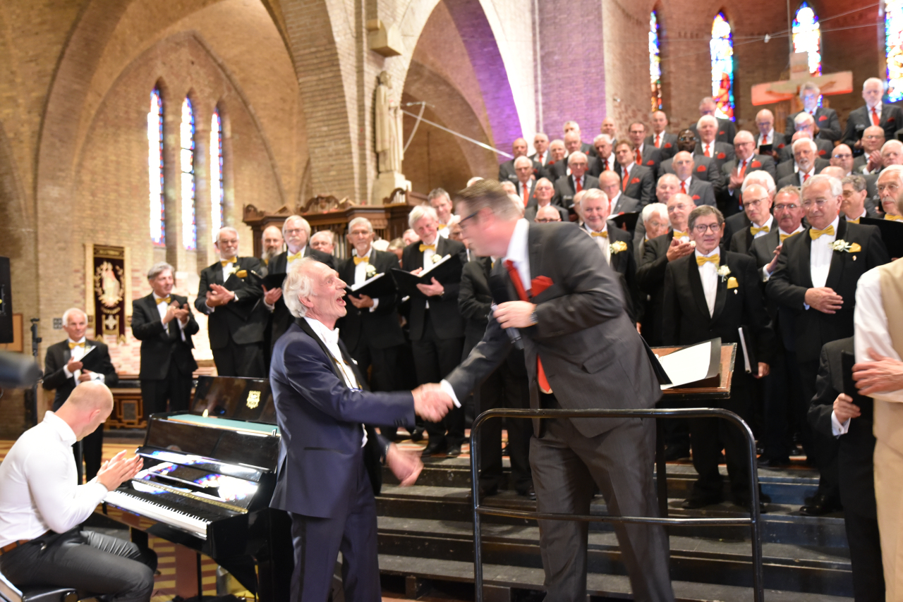 Gisteren gebeurde er iets bijzonders in De Tempel in Silvolde. Twee zwaargewichten in de wereld van het mannenkoor troffen elkaar op het podium: